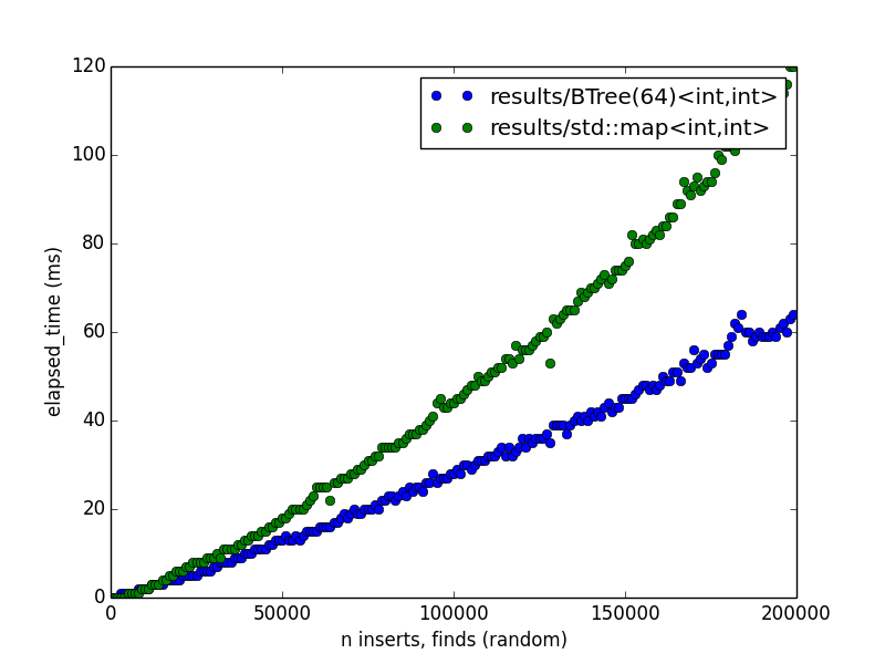 std::map<int, int> for N inserts / finds. Outputs CSVs into "results".